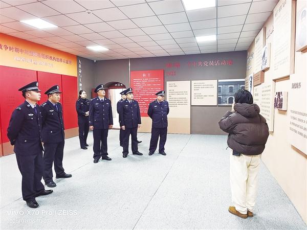 1月6日,淮阳区人民法院司法警察大队前往李之龙革命活动旧址参观学习,接受革命传统教育和党性的洗礼,以庄严而深刻的方式庆祝属于“藏蓝”的节日。参观过程中,干警们不时驻足沉思,交流感悟,在追忆红色历史中汲取精神力量,进一步筑牢政治忠诚,坚定从警初心。通讯员 滕孝忠 摄