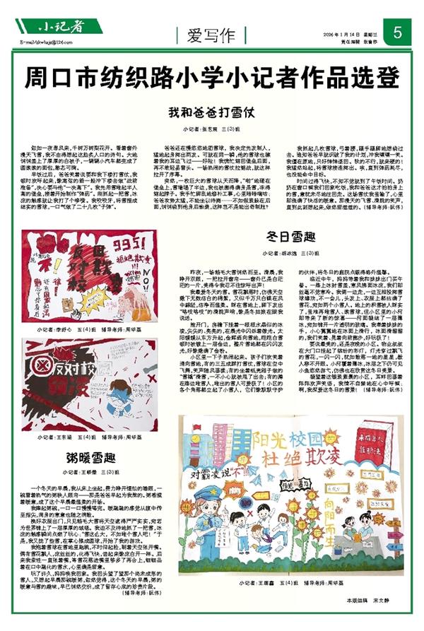 小记者:王瑞鑫 五(4)班 辅导老师:周华磊