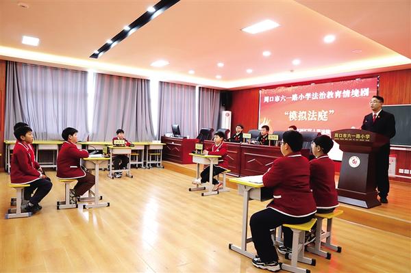 本报讯 为进一步增强青少年的法治意识,从源头预防未成年人违法犯罪行为的发生,1月28日下午,川汇区人民法院党组书记、院长徐林一行走进周口市六一路小学教育集团六一校区,对该校开展的法治教育情景剧进行现场指导与点评。这种互动式法治教育在孩子们心中悄然播下法治的种子。