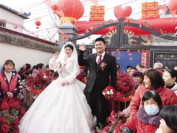 1月28日,淮阳区齐老乡村民陈乐乐正在家中举行婚礼。这场婚礼既热闹又不奢华,正是当下农村移风易俗、涵养文明乡风的生动写照。陈乐乐不攀比酒店排场,就在自家院里摆开流水席;不讲究山珍海味,家常菜照样吃得热乎。喜事新办,既实惠又体面。 记者 杜欣 通讯员 袁东升 文/图