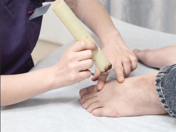 艾灸太冲穴 ●太冲穴 位置:在足背第1、2跖骨间,跖骨底结合部前方凹陷中(用手指按压足背,在大脚趾与第二脚趾之间的凹陷处,有明显酸胀感即为穴位)。 方法:采用温和灸法,艾条距皮肤2~3厘米,每次灸10分钟左右,每日1次。 功效:为肝经原穴,擅长平肝熄风、疏肝解郁。艾灸此穴可帮助缓解因肝气上扰引发的偏头痛、眩晕、颈项僵硬等症状。 (周口市中医院 张珂畅)