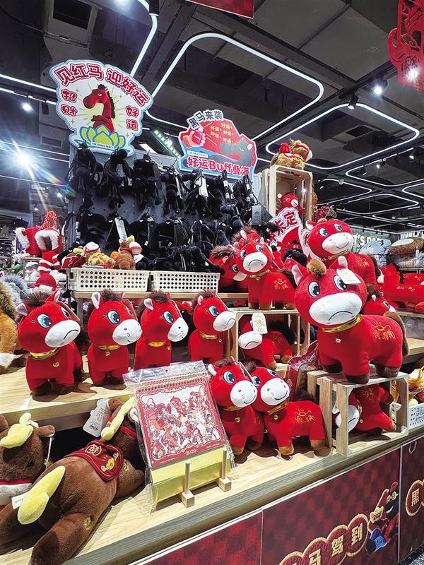 图为商店展台售卖的马年生肖玩偶。近日,马年生肖主题玩偶以可爱的造型和美好的寓意,迅速俘获了众多市民的心,掀起购买热潮。记者 杜营营 摄
