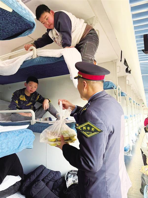 到饭点了,李征马上联系餐车,为孩子们准备了营养均衡的热饭热菜。他亲自将饭菜端到孩子面前,细心摆好餐具,叮嘱道:“慢慢吃,小心烫。”看着孩子们大口吃饭,他还不时询问是否合口味,那份耐心细致,宛如对待自己的孩子。餐后,李征坐在孩子身边,陪他们聊天、讲故事,缓解他们的陌生感与孤独感。旅途中,他还特意安排乘务员轮流关照,确保孩子全程安全。
