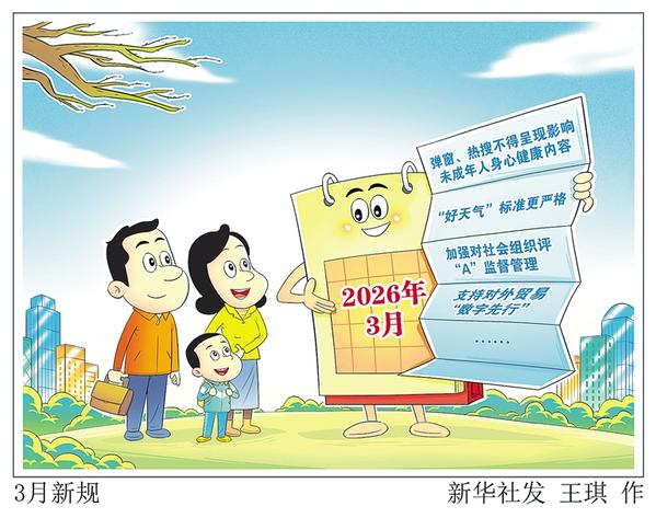 3月,一批新规将施行,内容涉及网络热搜弹窗、空气质量标准、社会组织评估、对外贸易数字化等。 新华社发 王琪 作