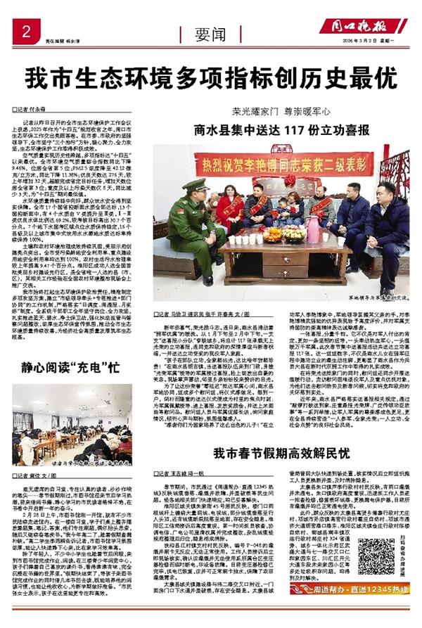 一张喜报,分量千钧。它不仅是对军人付出的肯定,更如一条坚韧的纽带,一头牵动热血军心,一头温暖万千军属。此次春节集中送喜报活动共送达立功喜报117张。这一组组数字,不仅是商水儿女在强军征程中建功立业的最生动注脚,更彰显了商水县作为兵员大县在新时代双拥工作中取得的扎实成效。