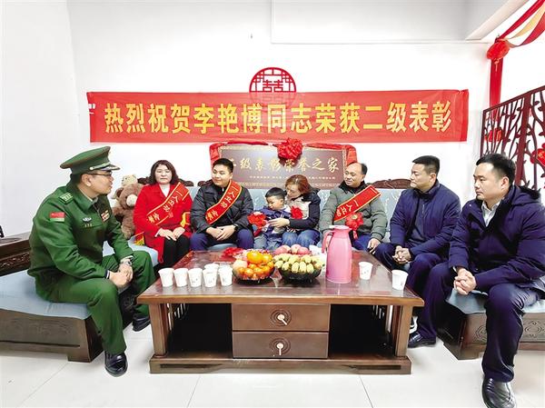 “感谢你们为国家培养了这么出色的儿子!”在立功军人李艳博家中,军地领导紧握其父亲的手,对李艳博精武强能的优异表现给予高度评价,并对军属支持国防的崇高精神表达诚挚感谢。