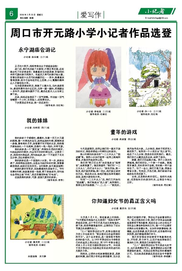 小记者:孙一心 三(1)班 辅导老师:刘红艳