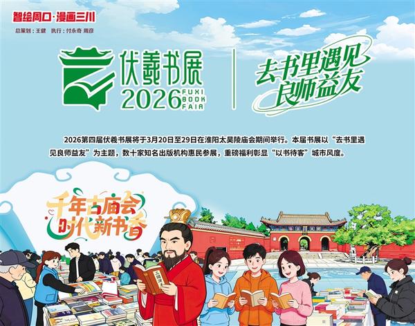 2026第四届伏羲书展将于3月20日至29日在淮阳太昊陵庙会期间举办。书展以“去书里遇见良师益友”为主题,多家出版机构参展,推出多项惠民福利。敬一丹、鲍国安、梁小民、马勇、刘墨等名家将带来新书分享与签售。安三山、刘诗利等民间读书人代表也将亮相,传递全民阅读接力棒。记者 黄佳 周彦 文/图