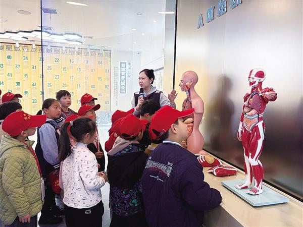 在“生命之旅”展区,从人的胚胎发育到老年阶段,小记者们认真感受全生命周期的健康守护。
