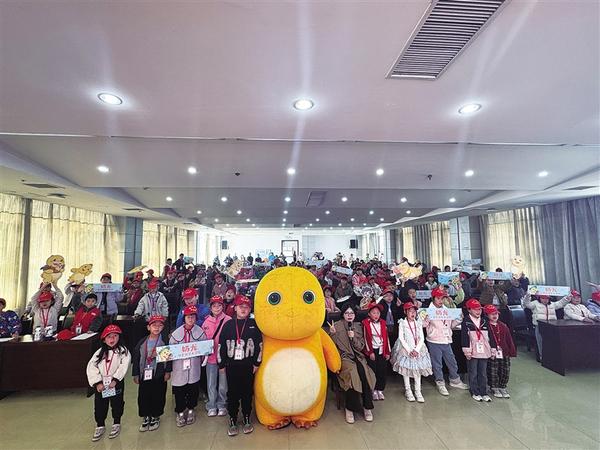 本报讯 3月21日上午,“跟着诗词去旅行——《奶龙游学大冒险》趣味课堂”活动在周口日报社14楼举行,100余名小记者欢聚一堂,与国漫IP“奶龙”及漫画创作嘉宾互动,在轻松欢乐的氛围中感受中华诗词的独特魅力。