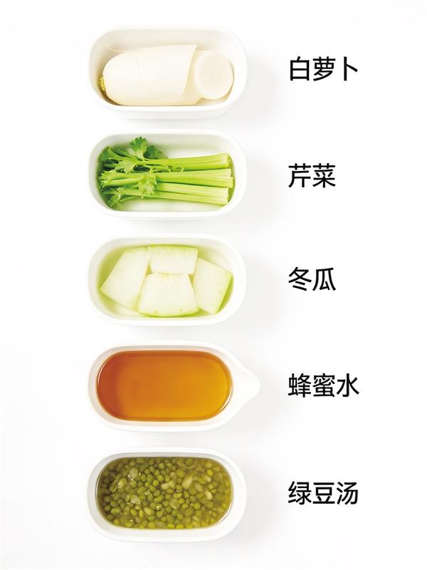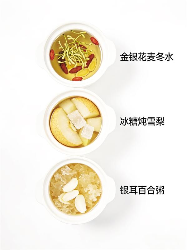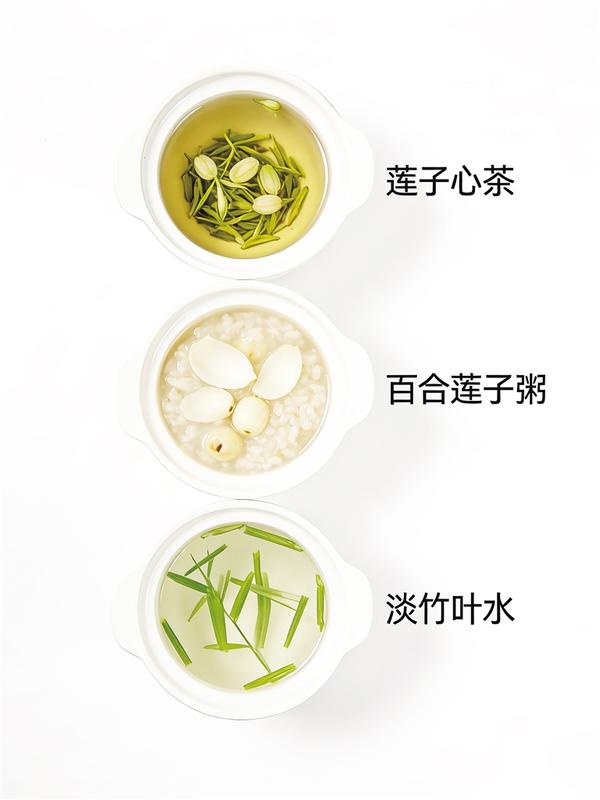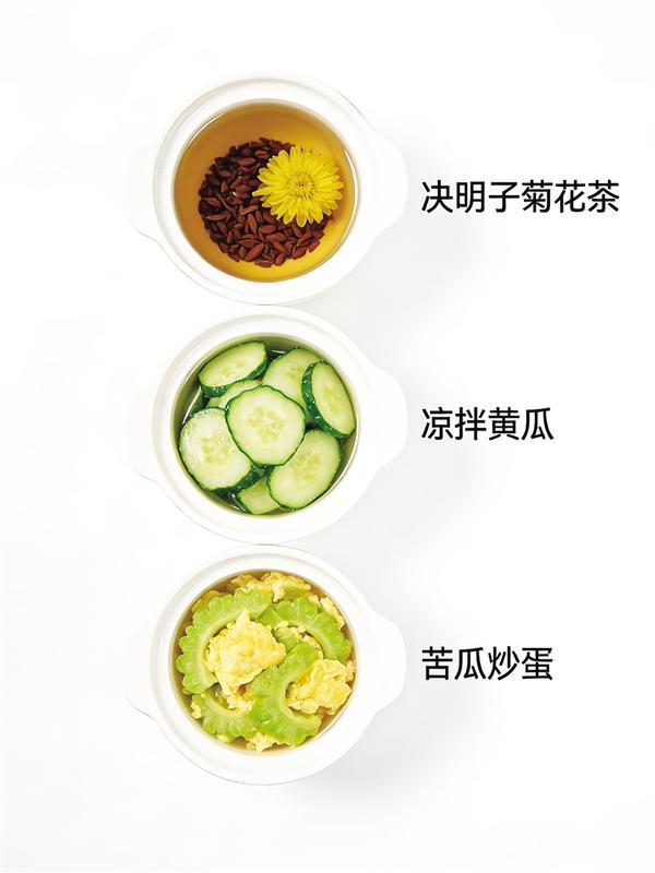 接下来再对症调理。不同的“上火”表现,调理的方法也不同。口干舌燥、喉咙肿痛甚至流鼻血,提示为“上焦火”,可以喝金银花配麦冬煮的水,或者食用冰糖炖雪梨、银耳百合粥,这些都是温和的滋阴润燥饮品,既能下火又不损伤身体;口舌生疮、心烦睡不着、舌尖红红的,则提示为“心火”,可以饮用莲子心茶,或者食用百合莲子粥,淡竹叶煮水饮用也可,能清“心火”而不伤人;口臭、牙龈肿痛、好几天不大便,提示为“胃火”,应多吃白萝卜、芹菜、冬瓜等凉润的蔬菜,饮用蜂蜜水或绿豆汤,帮肠胃“刮刮油、通通便”,把胃里的火排出去;头晕胀痛、动不动就生气、眼睛干涩,提示为“肝火”,可以饮用决明子菊花茶,或者多吃凉拌黄瓜、苦瓜炒蛋,既能清火,又能保护眼睛。