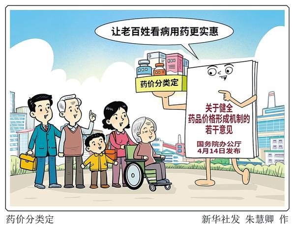 国务院办公厅4月14日发布《关于健全药品价格形成机制的若干意见》,14条举措画出一份清晰的“定价图”:药价分类定,突出临床价值和用药可及,支持医药产业高质量发展,让老百姓看病用药更实惠。新华社发 朱慧卿 作