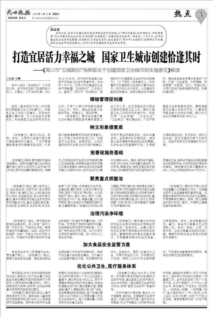 打造宜居活力幸福之城 国家卫生城市创建恰逢其时