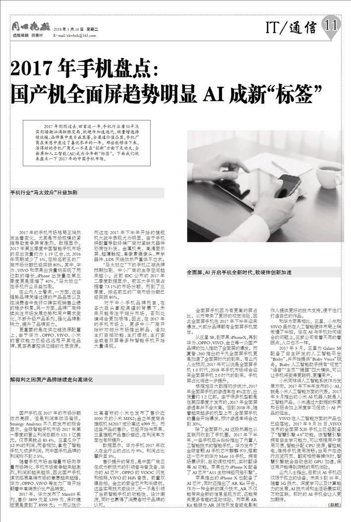 2017年手机盘点:国产机全面屏趋势明显 AI成新“标签”