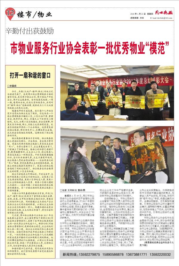 市物业服务行业协会表彰一批优秀物业“模范”