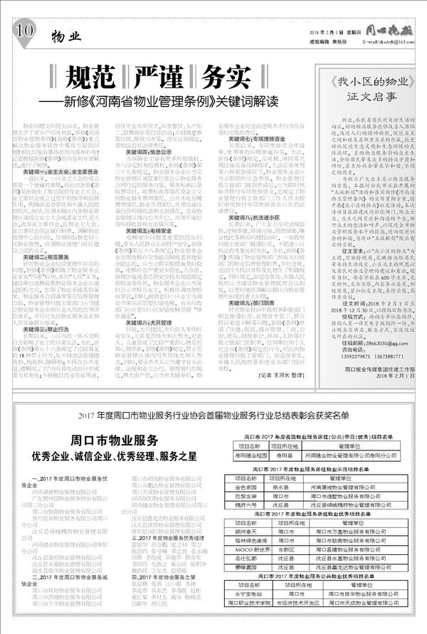 2017年度周口市物业服务行业协会首届物业服务行业总结表彰会获奖名单