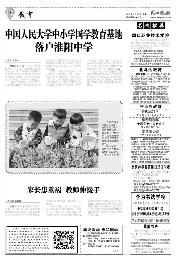 中国人民大学中小学国学教育基地落户淮阳中学