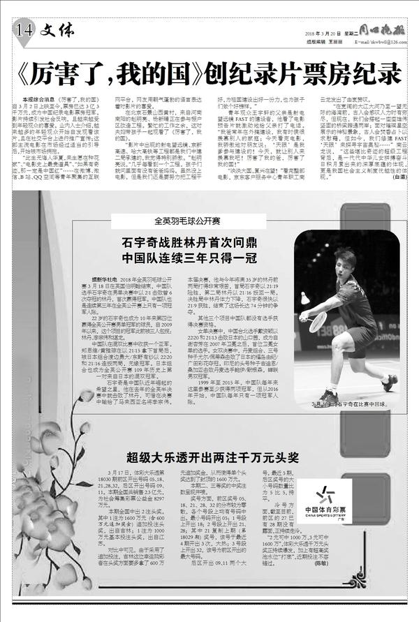 石宇奇战胜林丹首次问鼎 中国队连续三年只得一冠