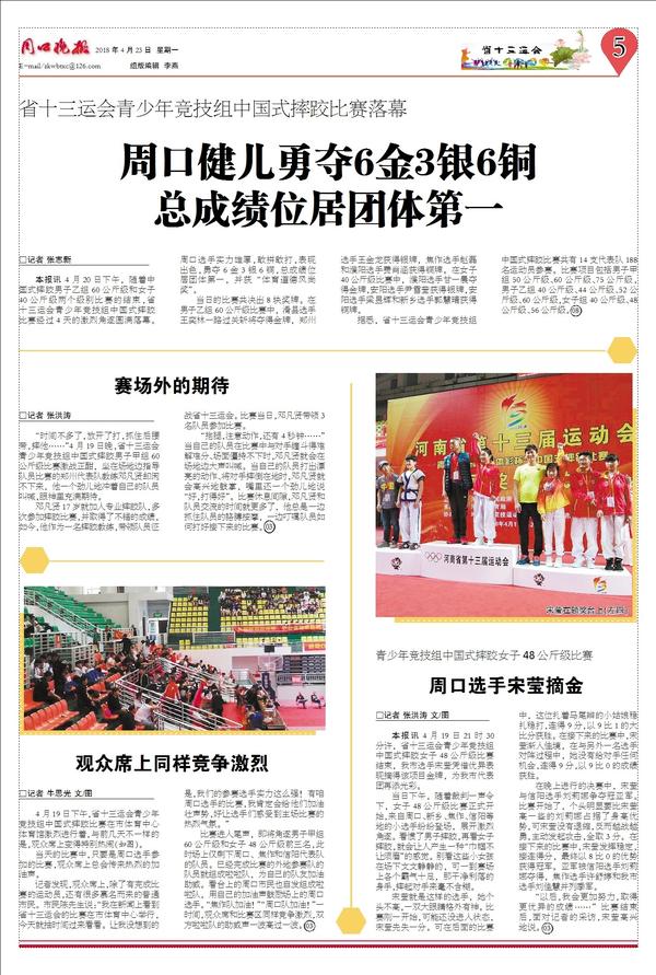 周口健儿勇夺6金3银6铜 总成绩位居团体第一