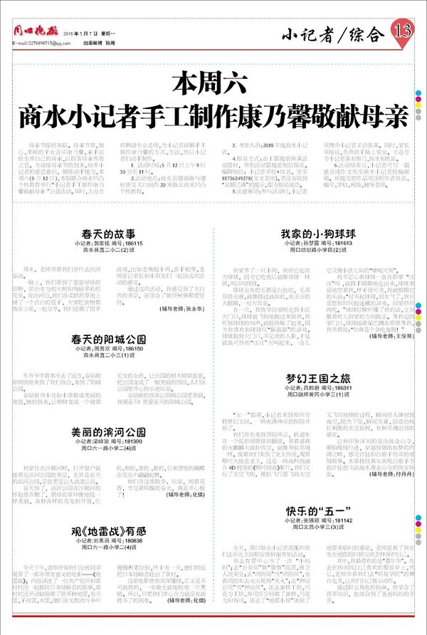 本周六 商水小记者手工制作康乃馨敬献母亲