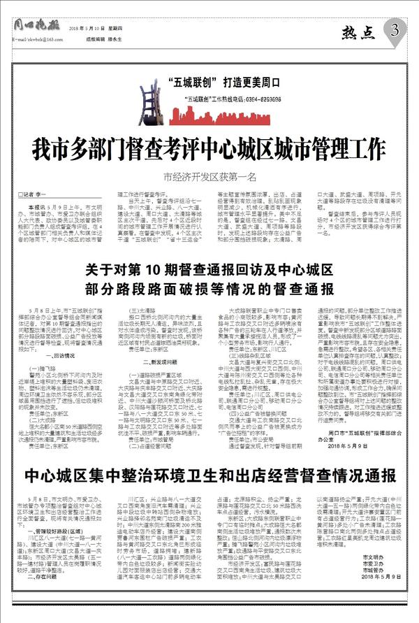 关于对第10期督查通报回访及中心城区部分路段路面破损等情况的督查通报