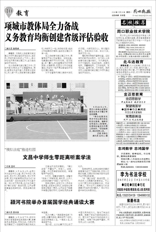 项城市教体局全力备战义务教育均衡创建省级评估验收