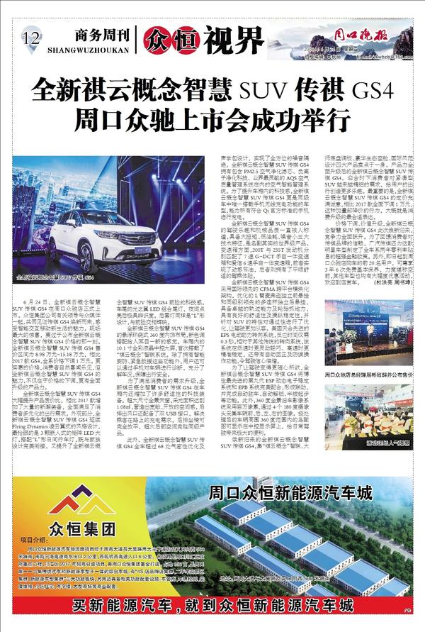 全新祺云概念智慧SUV传祺GS4周口众驰上市会成功举行