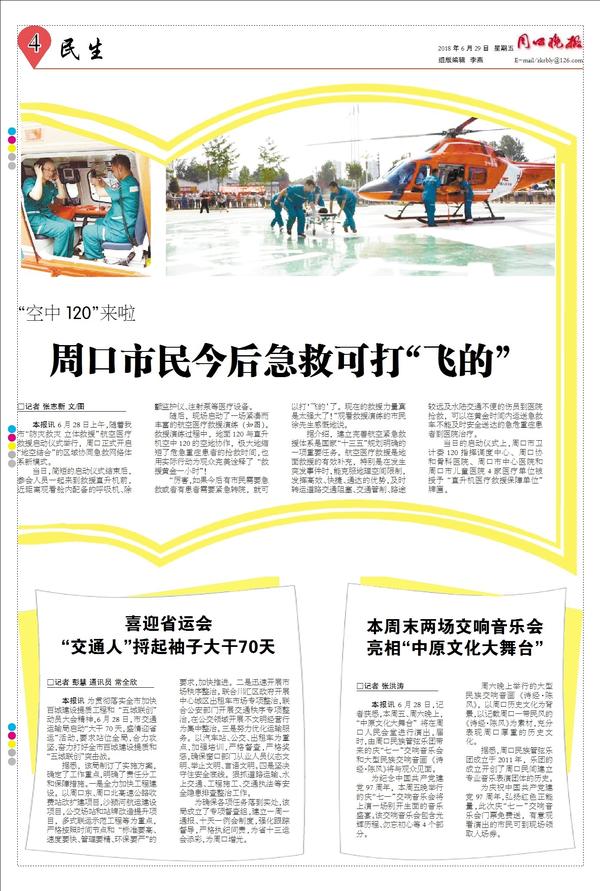 周口市民今后急救可打“飞的”