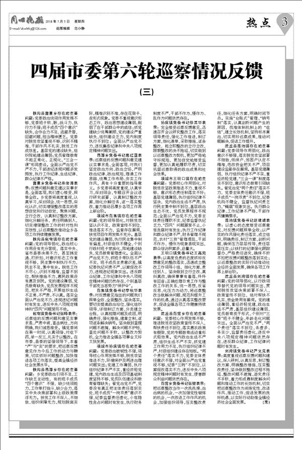 四届市委第六轮巡察情况反馈