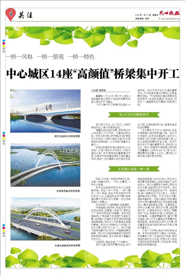 中心城区14座“高颜值”桥梁集中开工