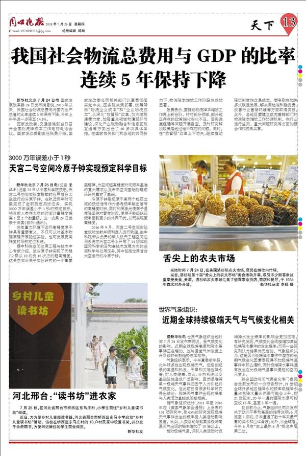 我国社会物流总费用与GDP的比率连续5年保持下降