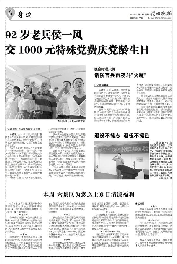 92岁老兵侯一风交1000元特殊党费庆党龄生日