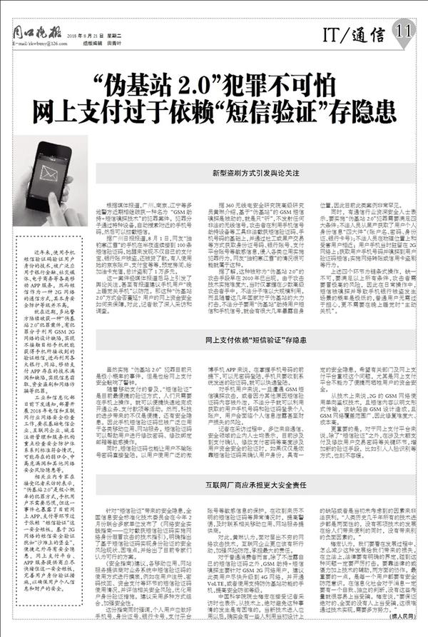 “伪基站2.0”犯罪不可怕 网上支付过于依赖“短信验证”存隐患