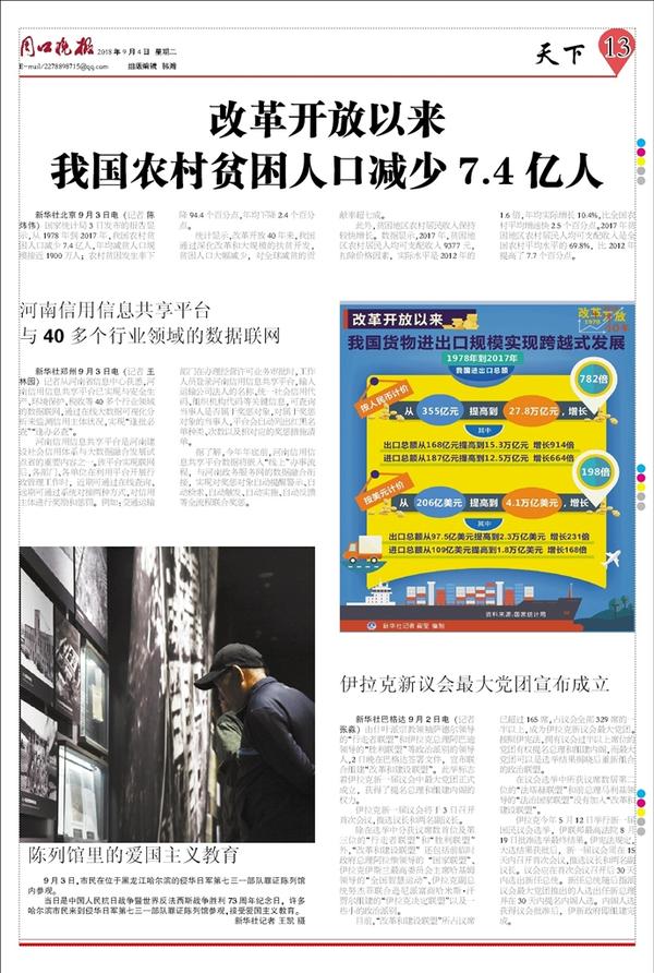 改革开放以来 我国农村贫困人口减少7.4亿人