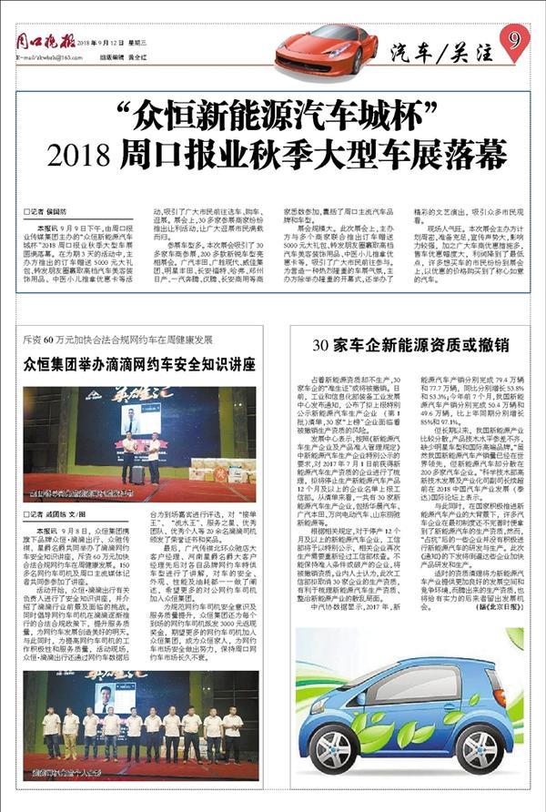 “众恒新能源汽车城杯”2018周口报业秋季大型车展落幕