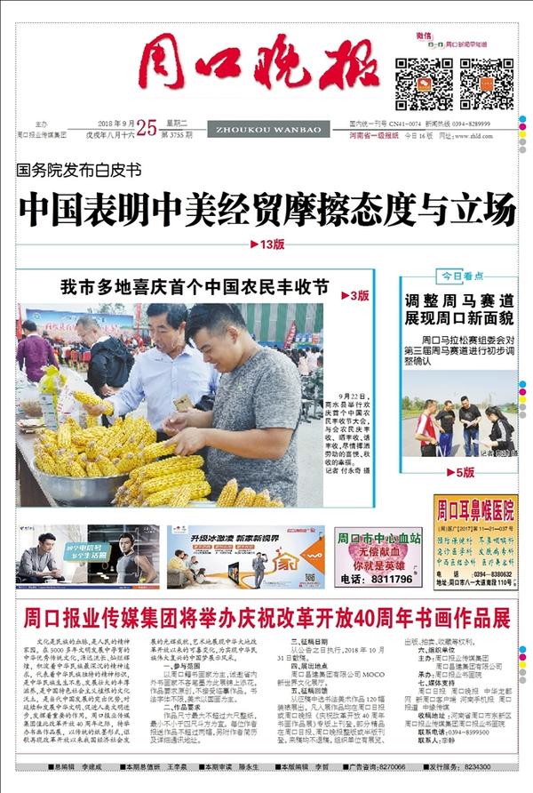 周口报业传媒集团将举办庆祝改革开放40周年书画作品展
