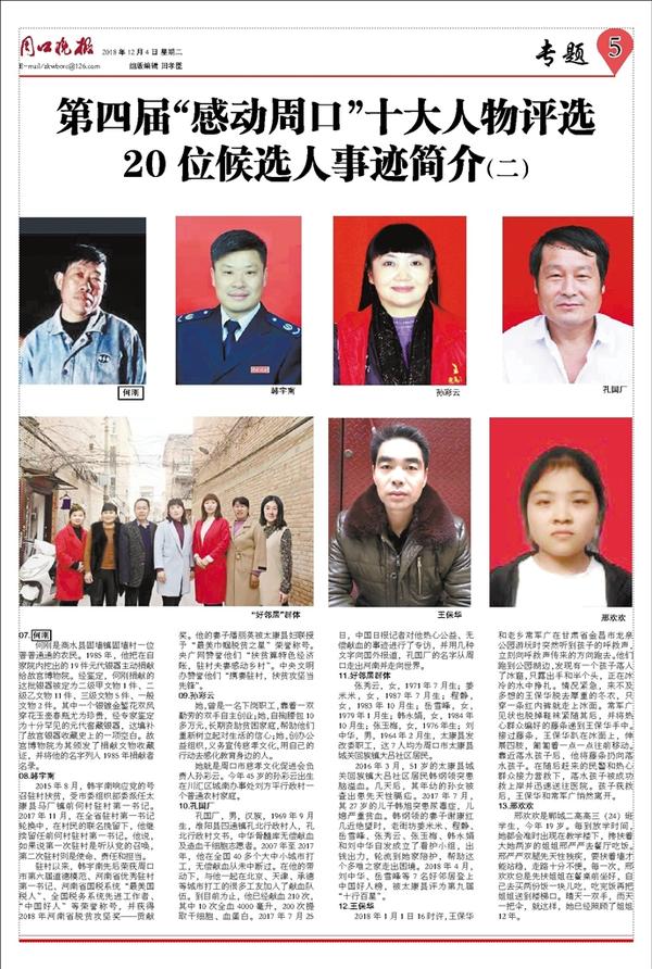 第四届“感动周口”十大人物评选20位候选人事迹简介(二)