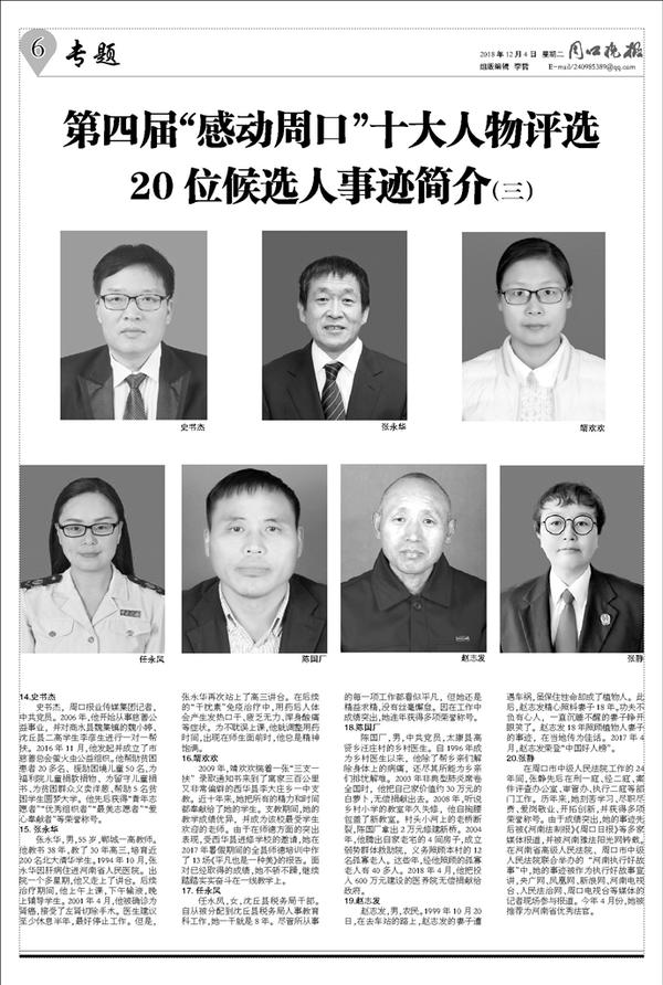 第四届“感动周口”十大人物评选20位候选人事迹简介(三)