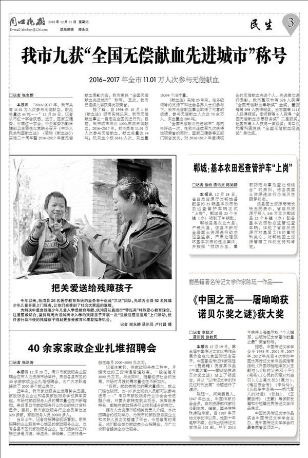 我市九获“全国无偿献血先进城市”称号