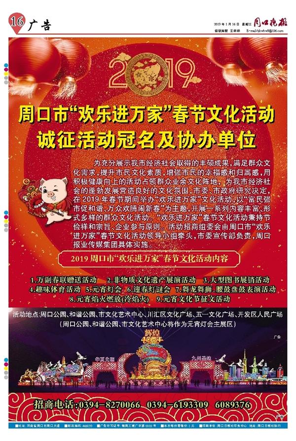 周口市“欢乐进万家”春节文化活动诚征活动冠名及协办单位