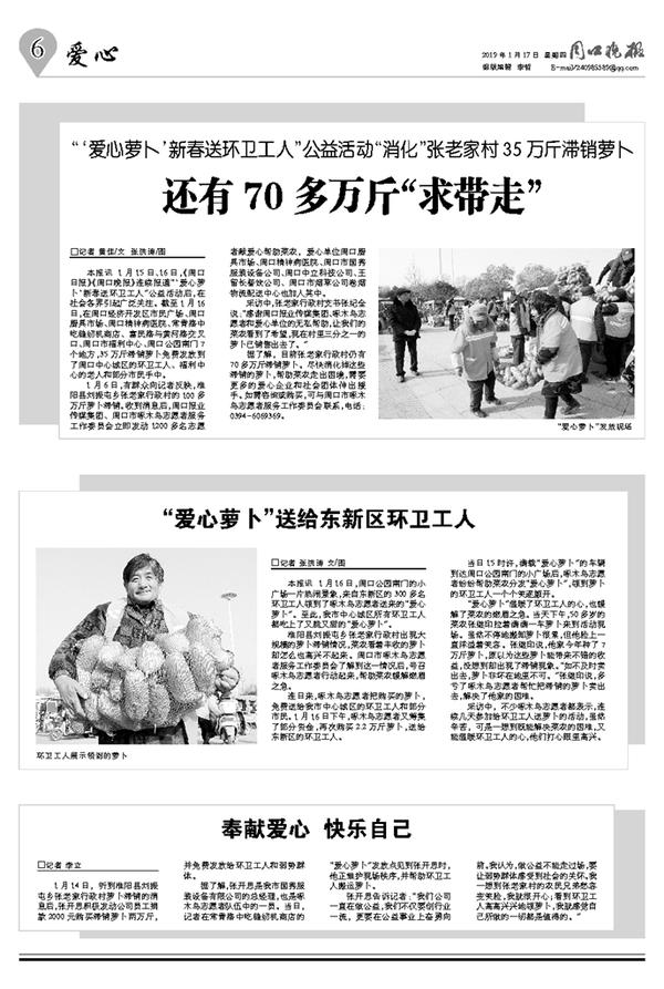 “爱心萝卜”送给东新区环卫工人