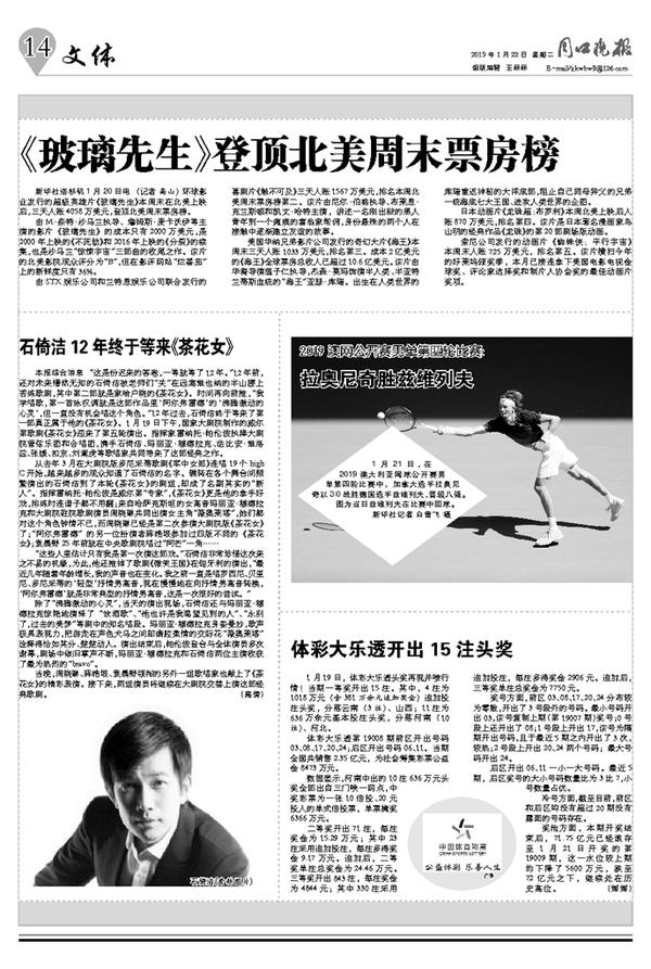 《玻璃先生》登顶北美周末票房榜