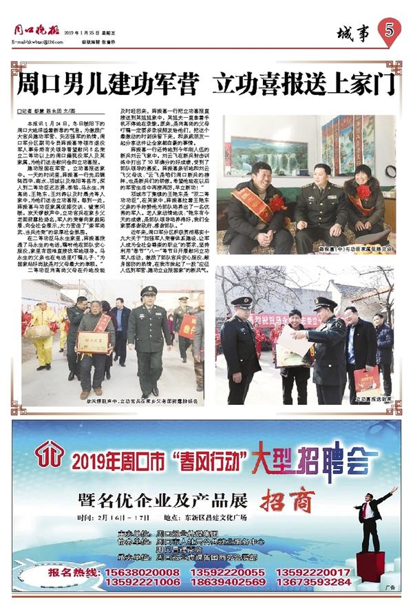 周口男儿建功军营 立功喜报送上家门