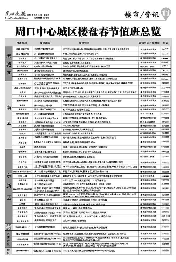 周口中心城区楼盘春节值班总览