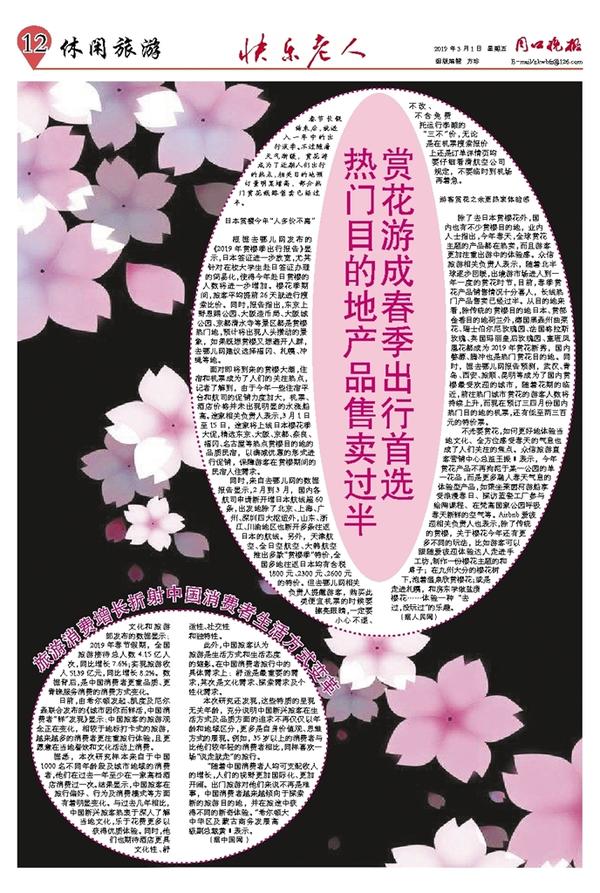 赏花游成春季出行首选 热门目的地产品售卖过半