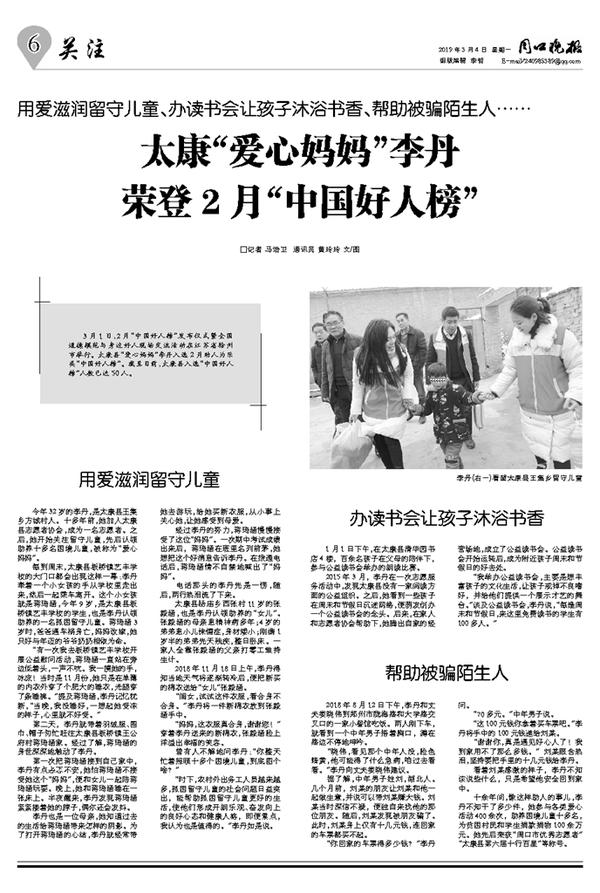 太康“爱心妈妈”李丹荣登2月“中国好人榜”