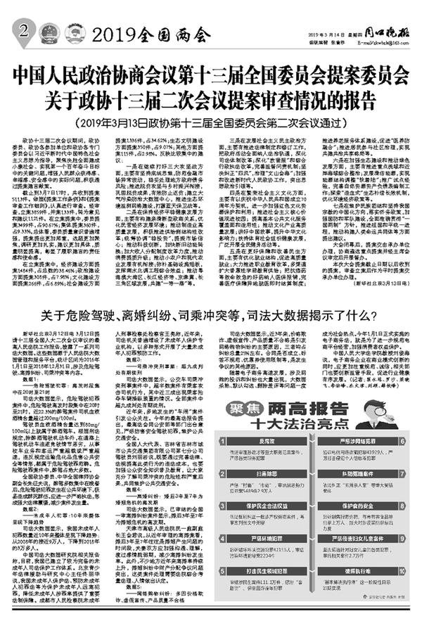 中国人民政治协商会议第十三届全国委员会提案委员会关于政协十三届二次会议提案审查情况的报告
