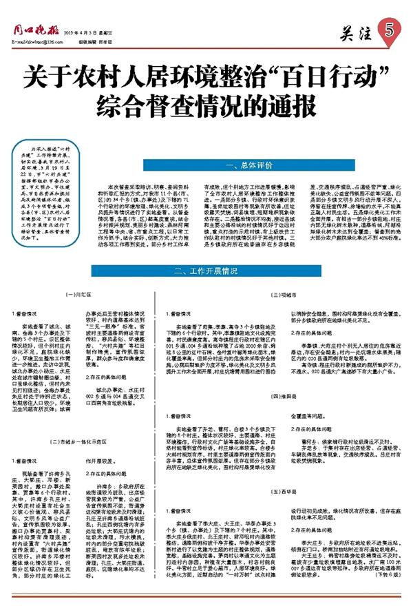 关于农村人居环境整治“百日行动” 综合督查情况的通报