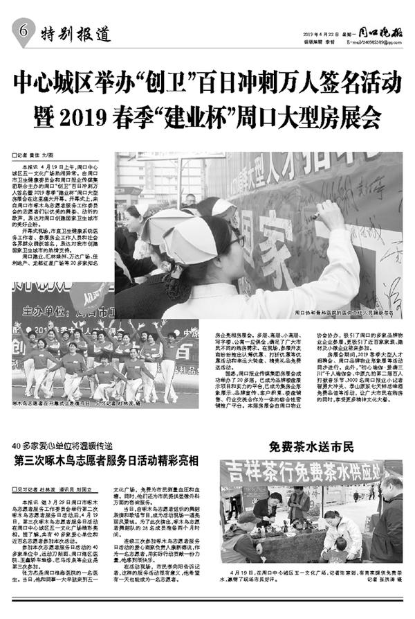 中心城区举办“创卫”百日冲刺万人签名活动暨2019春季“建业杯”周口大型房展会