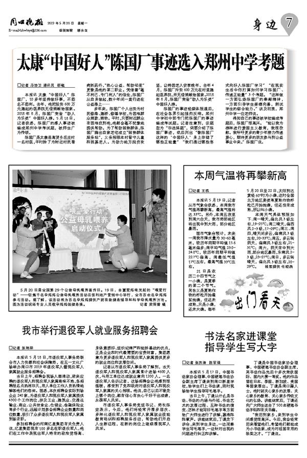 太康“中国好人”陈国厂事迹选入郑州中学考题